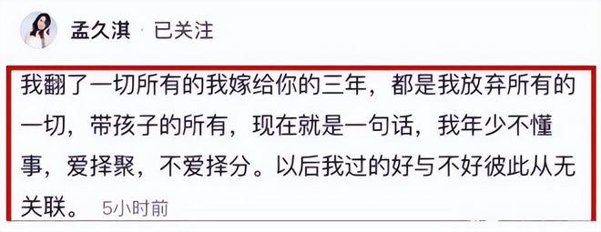 不难想象,即使现在巨兴茂和孟佳欣没有离婚,但他们的婚姻也是一地鸡毛了。