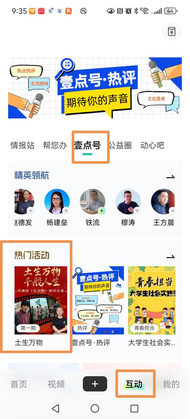 第一步:打开“齐鲁壹点”App,点击下方互动,再点击壹点号。
