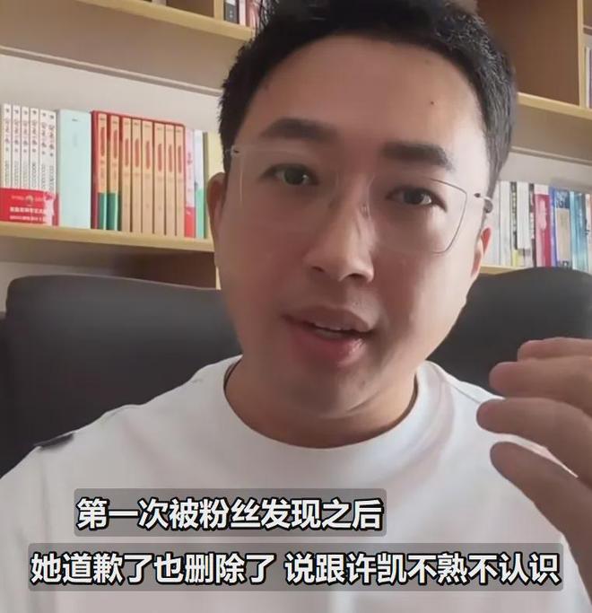 还说女方第一次被粉丝发现之后,她就道歉删文了,这点倒是和许荔莎疑似小号秀恩爱,被许凯粉丝发现后隐藏一事对上了。