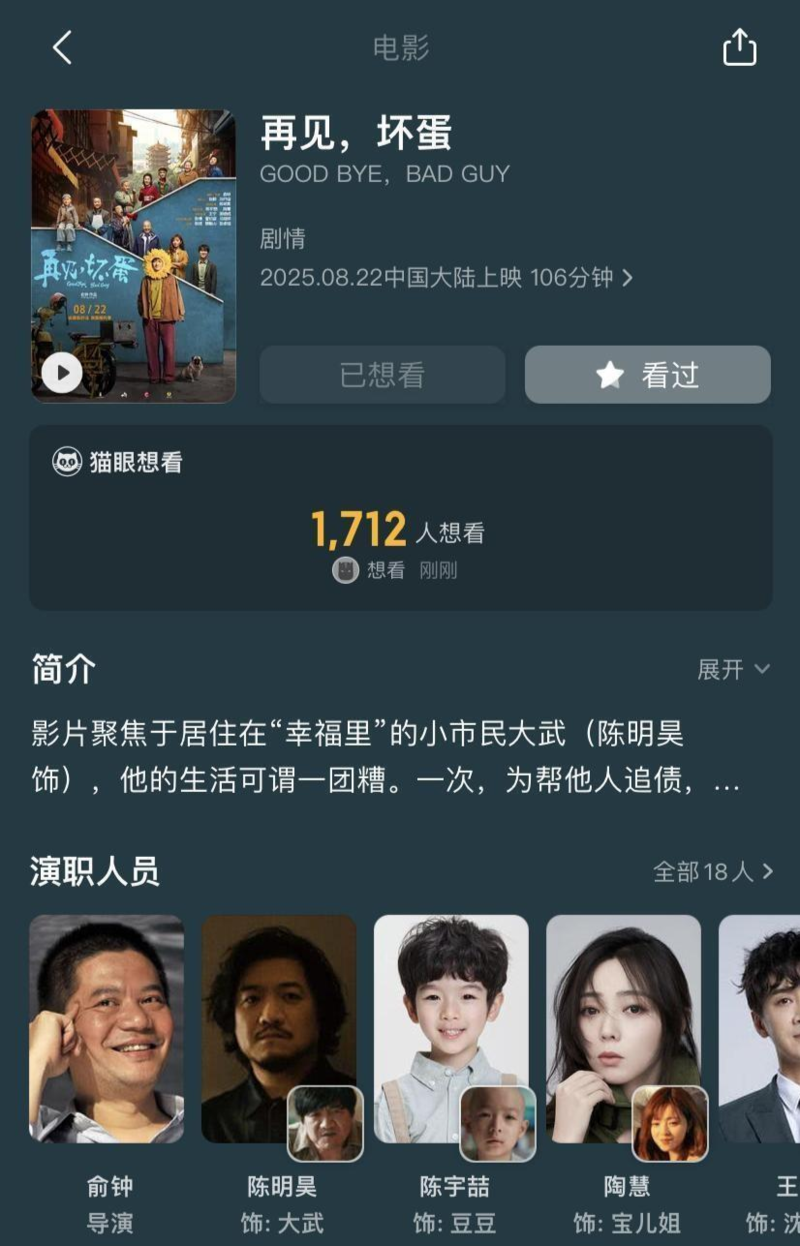 当年《流浪地球2》单日票房都能突破亿,而《再见,坏蛋》最低的时候,单日票房只有区区万元。