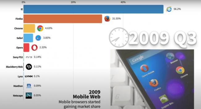 2009年,火狐浏览器市场份额突破30%,一度风光无比。(图/Youtube@Captain Gizmo)