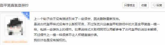 这张海报引来一些《黑神话:悟空》的玩家热议,有玩家认为,海报里张艺兴的盔甲与《黑神话:悟空》的大圣金甲几乎一模一样,在一些装饰上的细节也是如此,说道:“如果说样式大致相同可以用都参考了古代盔甲的说法来解释,不过细节上一模一样很难不让人怀疑直接抄袭。”更多的玩家也有着相同的看法。屏幕前的你如何看待此事?一起在评论区聊聊吧!