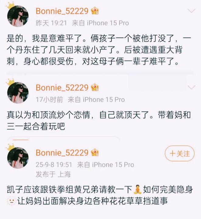 于是黄景瑜前妻跳出来说,许凯应该跟黄兄弟请教一下,让妈妈出面解决。
