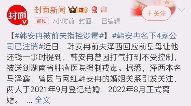 “地狱少女”韩安冉,这些年又多了一个绰号“八离世家”,现在前夫已经凑够一桌麻将了,她正在凑第二桌。