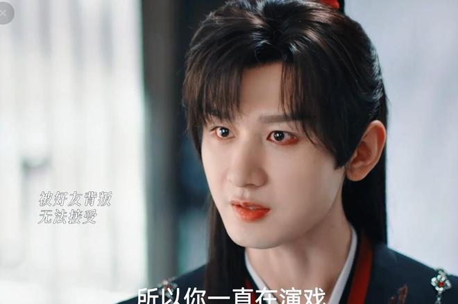 流水线似的眉毛,鲜艳的口红,还有那眼下红色的眼影,不仔细看,还以为他哭了呢,这是演技不够,妆容来凑吗?