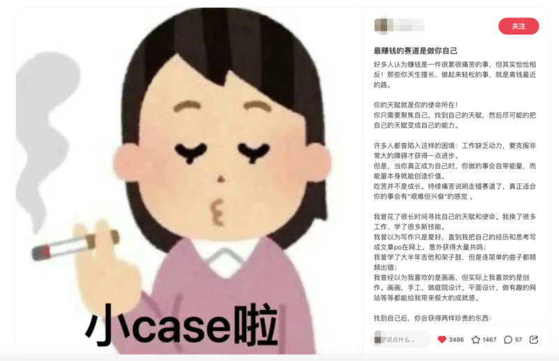 惠思有他自己的考量,从他开始做内容这几年,账号每年的粉丝、收入都呈倍速增长,起初他只是将小红书当成副业来做,但当副业收入稳定超过主业时,他觉得,哪个是主业,确实值得好好评估评估。