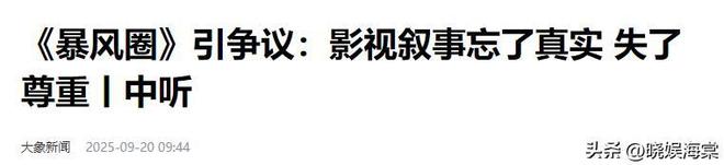 大象新聞2025年9月20日報道《暴風圈》引爭議:影視敘事忘了真實 失了尊重丨中聽
