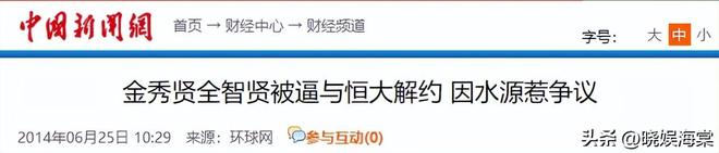 環球網2014年6月25日報道金秀賢全智賢被逼與恒大解約 因水源惹爭議