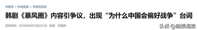 荊楚網2025年9月18日報道韓劇《暴風圈》內容引爭議,出現“為什麼中國會偏好戰爭”台詞- 新聞來源於其它媒體,內容不代表本站立場!