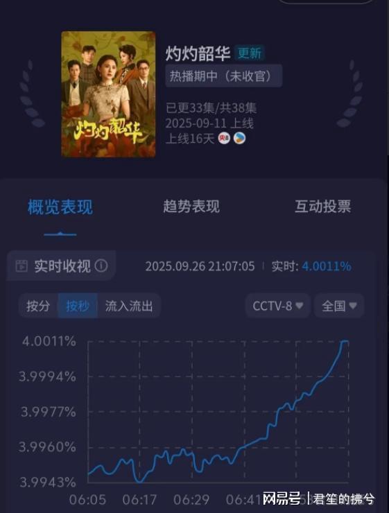 各位讀者,看到《灼灼韶華》的收視率破4%後,你認為這部劇會成為2025年“劇王”嗎?在沒有流量加入的情況下,能取得如此亮眼的成績,真的是太難得了。- 新聞來源於其它媒體,內容不代表本站立場!