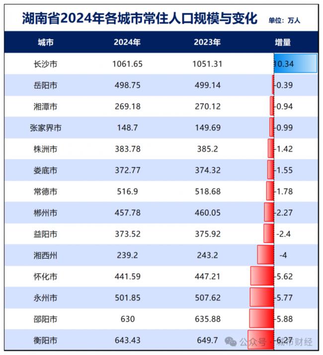 2023年同样如此,只有长沙人口在增长。2024年长沙增加10.39万,整个湖南减少29万人。