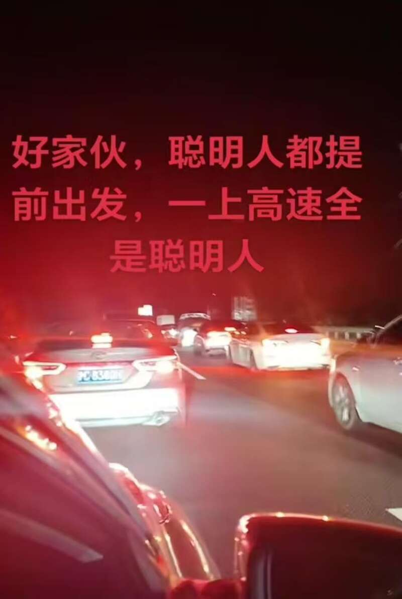 “聪明的人提前上高速了,结果发现高速上全是聪明人。”评论区有网友称,已经堵了两小时了,一动不动。- 新闻来源于其它媒体,内容不代表本站立场!