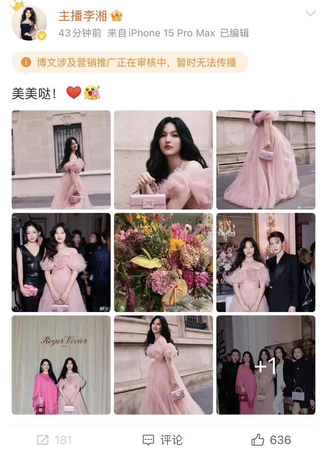 意识到自己发布的动态翻车后,李湘也赶紧上线将原先动态删除,然后修改过后继续上传。