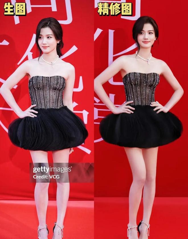 就像是在文化大赏中穿的黑色抹胸裙,腰身纤细,而且大长腿也出奇的长。