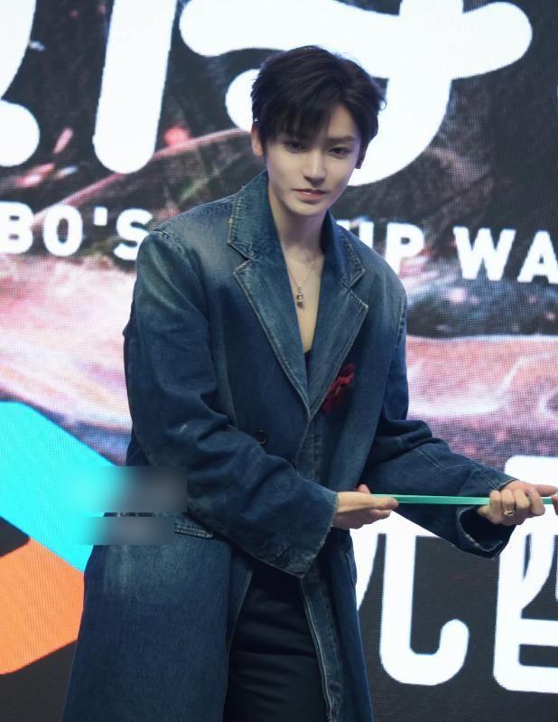 当天穿了件深蓝色牛仔大衣,版型看着有点大,套在身上不贴肩,显得整个人瘦成皮包骨。
