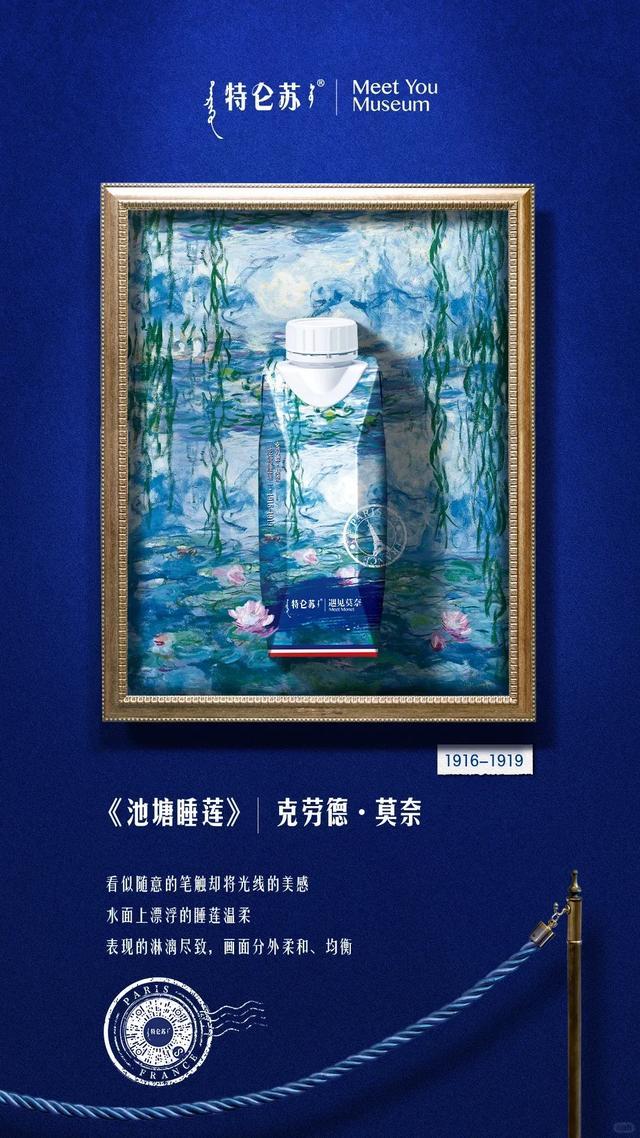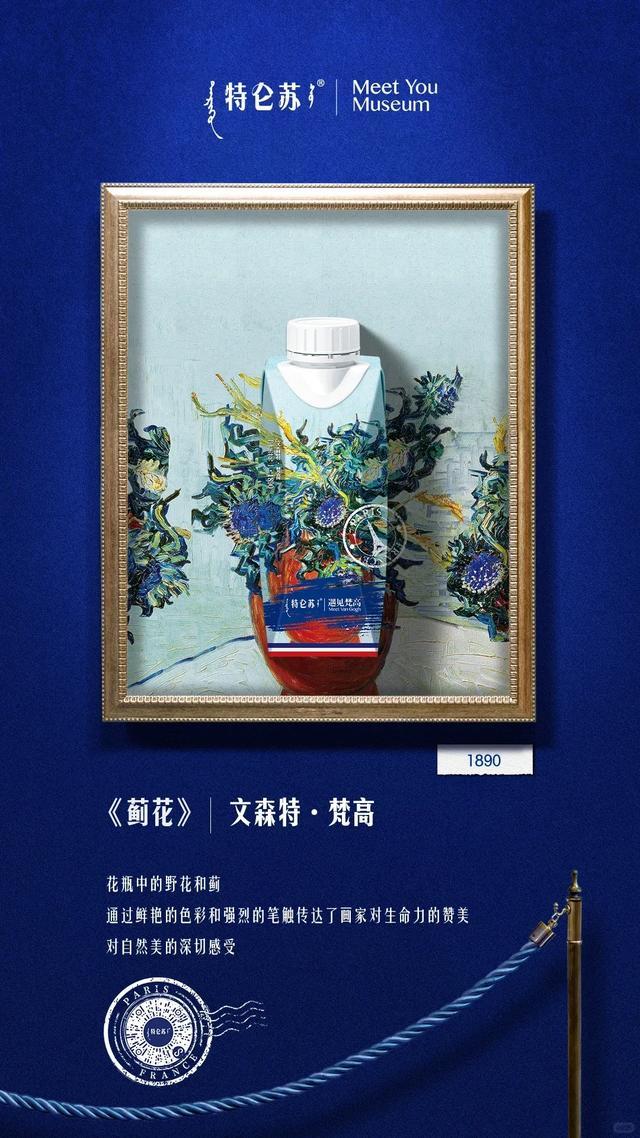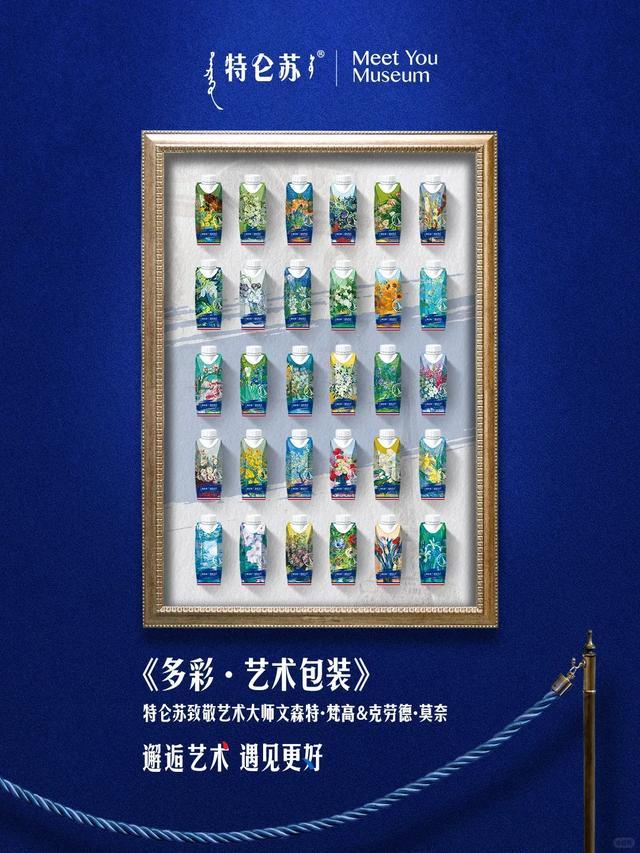 有意思的是,特仑苏虽然在名字上 “马虎”,设计却很在线:和博物馆联名的艺术包装,印着名画像拆盲盒;