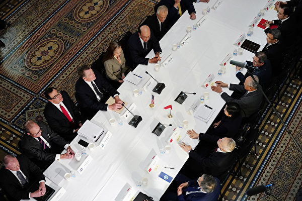 图为2019年2月21日,美中代表在美国举行贸易谈判。(Mandel Ngan/AFP)