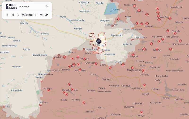 同时,乌克兰开源情资团体DeepState指出,俄军透过步兵埋伏及无人机攻击,已经切断通往邻近城市米尔诺赫拉德(Myrnohrad)的军事补给线。