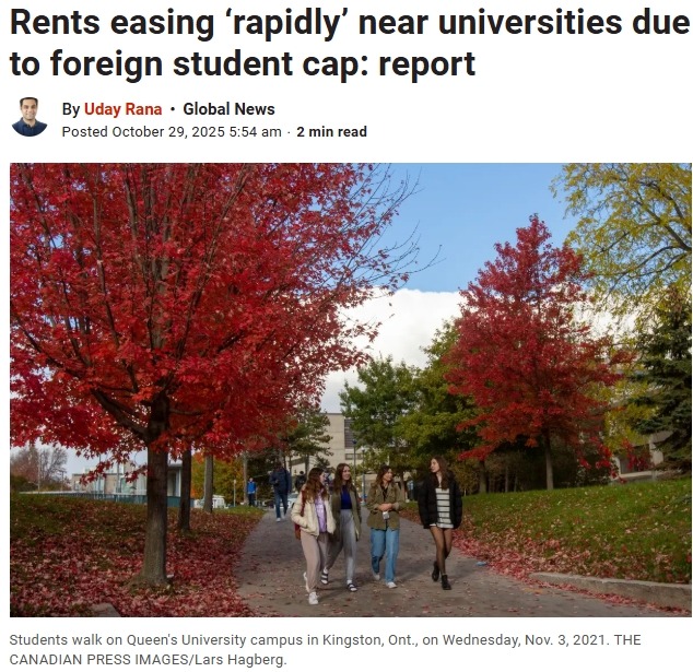 根据全球新闻的报道,Rentals.ca表示:“由于联邦政府对国际学生签证的新限制,加拿大的学生租赁市场迅速降温,导致价格下降,且全国主要高等教育机构附近的学生租房市场有了更多选择”。