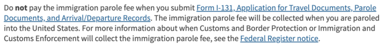 首先,這個費用不是在申請 I-131 AP 的時候繳納,而是獲得批准並在入境的時候繳納。若在海關無法支付此費用,將被拒絕假釋人入境並可能面臨遣返。
