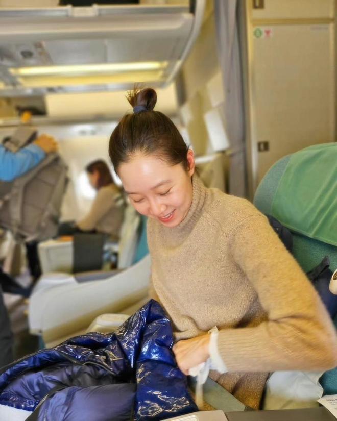 雖為大明星,但孔孝真日常生活氛圍的照片並不是精修,有時是手忙腳亂的抓拍,有時是日常生活小記,坐飛機時的孔孝真狀態和普通人無疑,放在腿上的羽絨服以及幹淨利索的高丸子頭,外加適合長旅途的素顏狀態,壹點沒有明星架子,真的非常接地氣了。