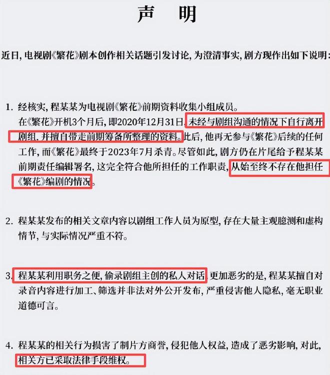 也就是说,古二应该有一份和《繁花》剧组签署的书面合同,明确署名、稿酬、创作内容、权利归属。