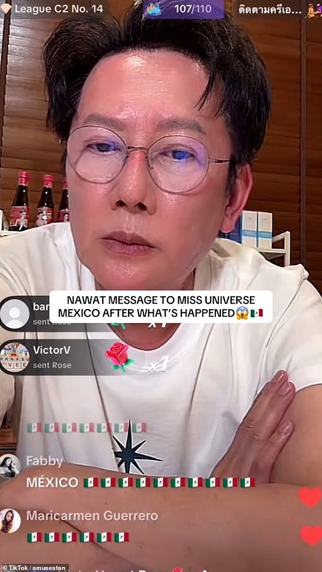 2025年11月4日,在泰國舉行的環球小姐2025選美大賽的披肩儀式上,賽事執行總監納瓦特·伊薩拉格裡西爾(Nawat Itsaragrisil)當眾批評了來自墨西哥的環球小姐參賽選手法蒂瑪·博什(Fátima Bosch),並稱其為“笨”,這壹事件迅速引發了廣泛關注。