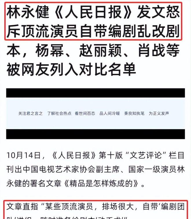 前脚林永健老师刚在《人民日报》发文说得透彻:“现在选角不看演技看粉丝量,演员自带‘编剧团队’改剧本,把好好的角色改成‘明星定制款’。”