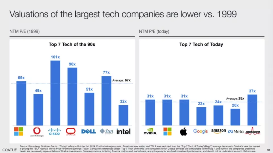 这意味着,虽然科技股仍不便宜,但投资者如今为真实利润而非炒作支付溢价。与当年的互联网泡沫相比,如今的上涨更有盈利支撑。