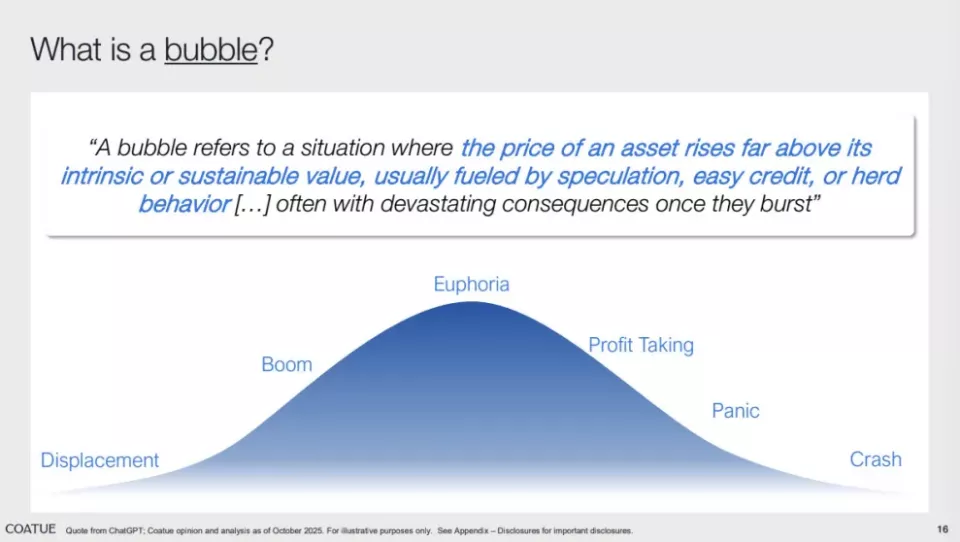 面对“AI是否陷入泡沫”的热议,美国知名对冲基金Coatue深度研究了过去400年间30余次典型泡沫案例,从中提炼出共性特征,并据此发布了年度AI重磅报告。