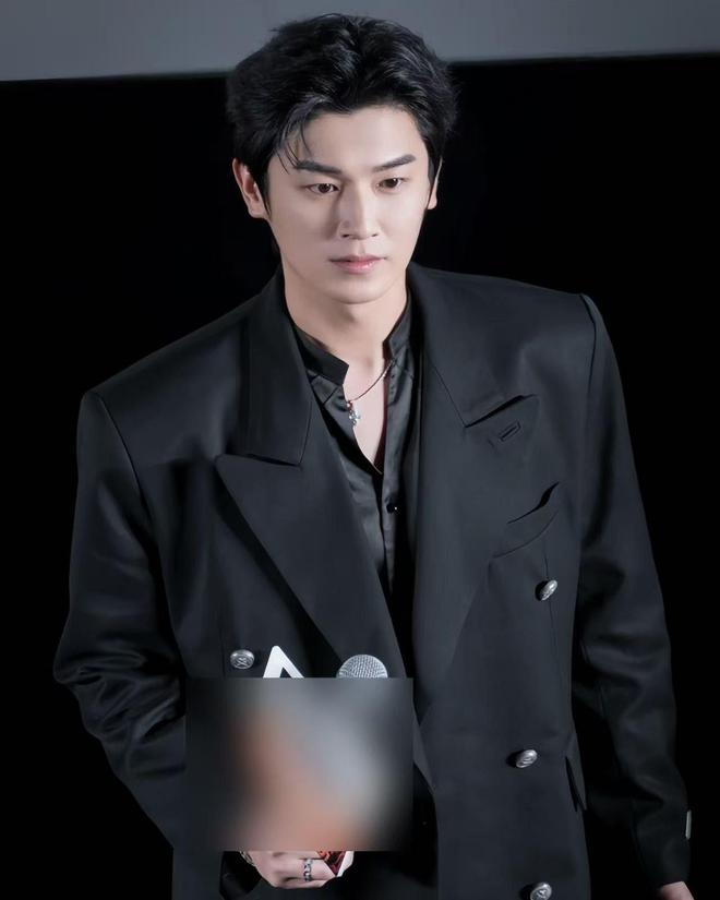 照片里他穿黑色大姨,黑西装裤黑皮鞋,内搭黑色的T恤,大高个超级抢镜,简直就是全场最靓的仔。