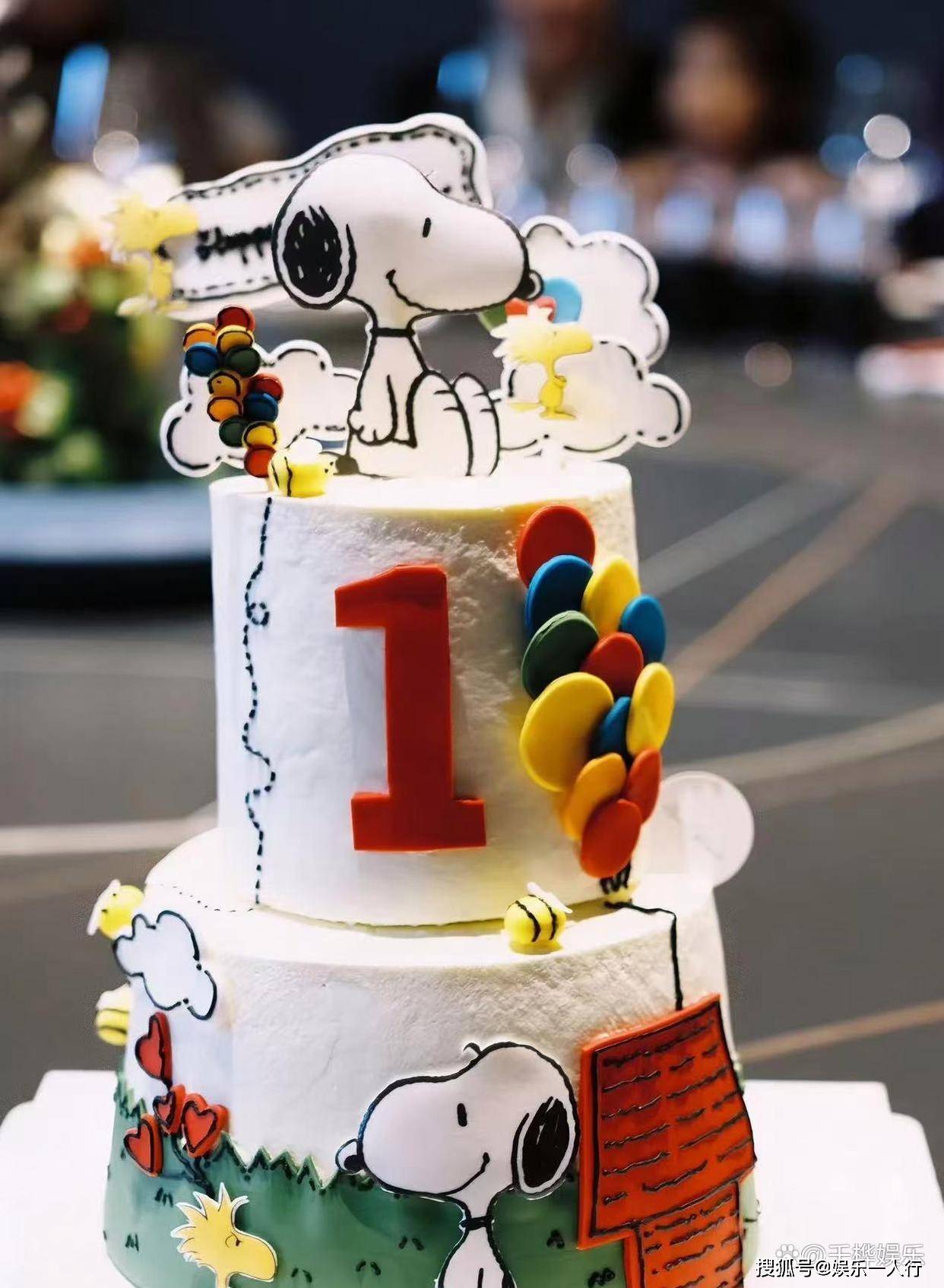 这场在黄晓明舅舅家举办的生日宴,光是那个定制史努比蛋糕就价值五位数。 从现场流出的照片可以看到,背景墙采用香槟金主题装饰,墙上挂着"周岁快乐"的艺术字,整个布置看起来比很多明星婚礼还要精致。