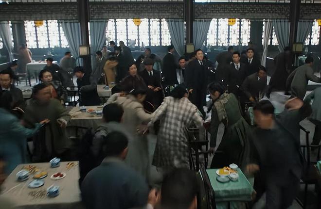 哪这么巧,地下党在茶楼接头,而男主调任第一天竟然就在这里出现了。