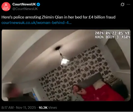 检察官指出,被英国媒体称为“加密女王”的钱志敏在逃避当局追捕多年后,于2024年4月被捕。
