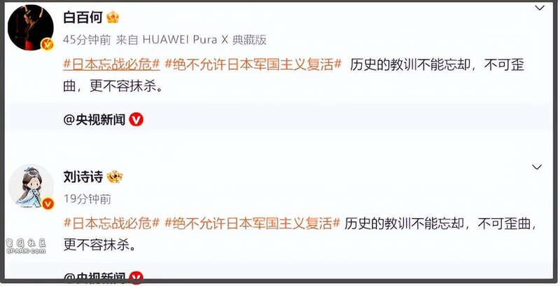 央視新聞發文稱要時刻牢記“忘戰必危,好戰必亡”,不允許任何人挑戰戰後國際秩序及和平。隨後,眾多明星紛紛轉發。