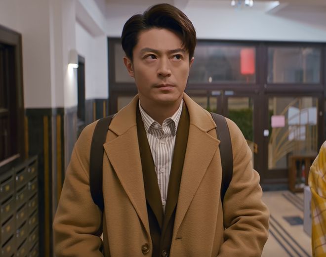 俞瑜在劇中的造型總是與表現出的個性有些反差,條紋襯衫、咖色西裝,外搭壹件駝色大衣,看起來是沉穩的商務精英。