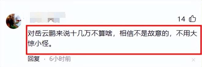 有网友认为14万对于岳云鹏而言不是什么大钱,如今出现这样的情况可能是公司财务的问题,是公司存在管理不善的问题。