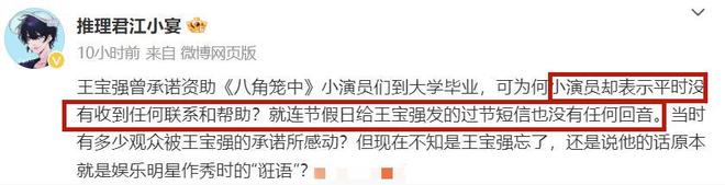 彼时有狗仔爆料称王宝强曾承诺资助拍摄《八角笼中》的小演员上学,但没有兑现承诺。