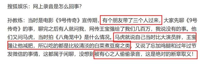 孙教练说被曝光的录音是狗仔偷录的,内容断章取义。