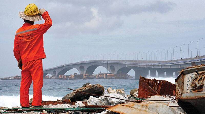 中国资助马尔地夫连结主要机场和首都的桥梁工程,现在已成为无力偿付的沉重债务象征。(Reuters)