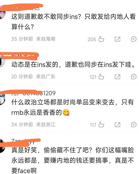有眼尖的網友扒出來不對勁:這份道歉就只發在了微博上,咱們國內用戶能看見,可當初在 Instagram 上引發爭議的那篇帖子,還安安穩穩掛著沒動,頁面靜悄悄的,跟啥事兒都沒發生過壹樣。