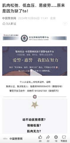 早在2024年10月,中国警察网就开始发文推销营养品。
