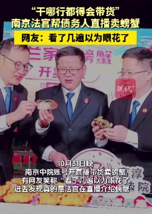 今年10月31日,南京市高淳区法院也在京东开设“司法变卖直播专场”,声称是“帮债务人卖螃蟹”。但网民纷纷嘲讽法院“不务正业”、“穷到什么地步才会来干这种事”。