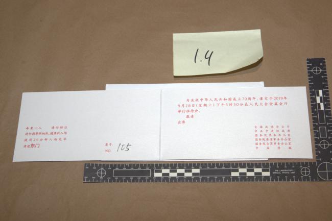 孙雯与部分美国侨团负责人在北京参加庆祝中共执政70周年的活动,摄于人民大会堂的庆典现场 图片来源:美国司法部 资料来源:美国联邦调查局