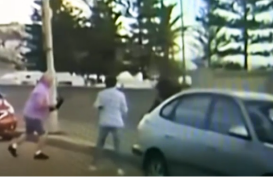 监控画面显示:一对夫妇在路上出手阻止赛义德·阿克拉姆行凶。图源:澳媒