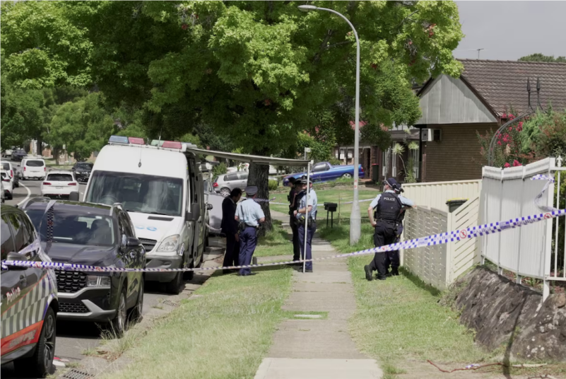 当地时间12月15日,澳大利亚警方在邦迪滩案嫌疑人住所外站岗。图源:外媒报道配图