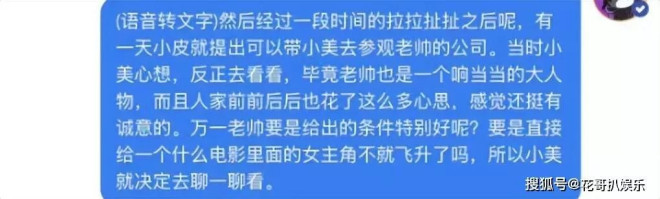 为了拿下小美,老导演没有亲自出面,而是派手底下的人当中间商,拿着资源和好处轮番引诱,又是许诺主角戏份,又是画着名利双收的大饼,试图让涉世未深的小美乖乖就范。