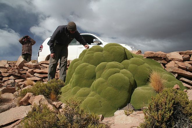 虽然 Azorella compacta 看起来像是一团附着在岩石上的巨大绿色苔藓,甚至像是一块发霉的巨石,但它实际上是伞形科(Apiaceae)的植物。