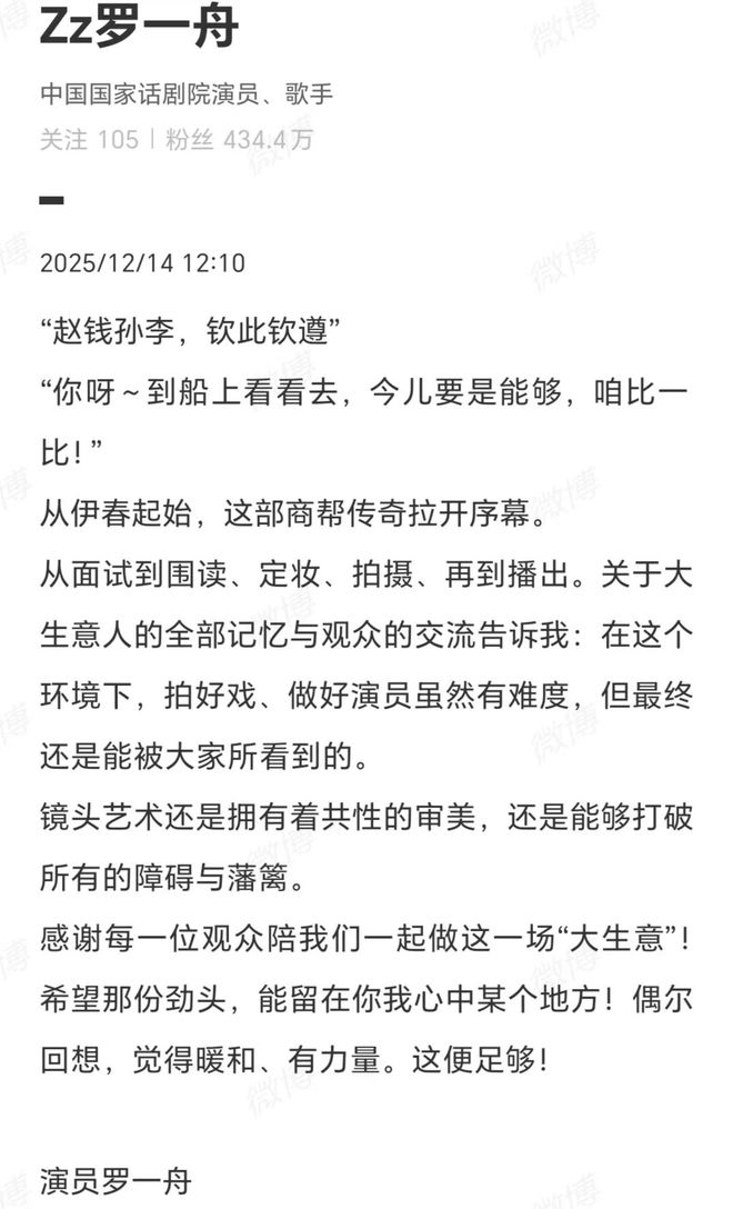 《大生意人》大结局,罗一舟发文告别: