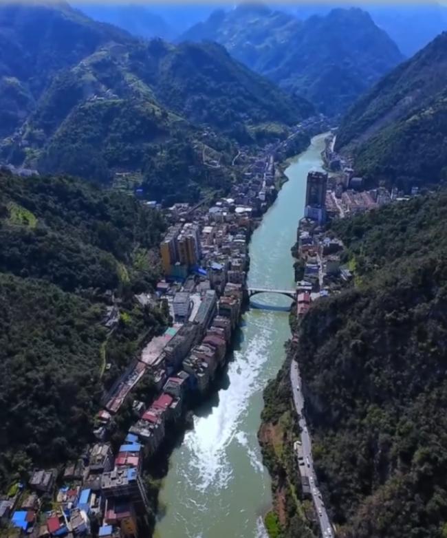 盐津县城位于峡谷之中,两侧是悬崖绝壁,最窄的地方不足30米,最宽处也只有300米。